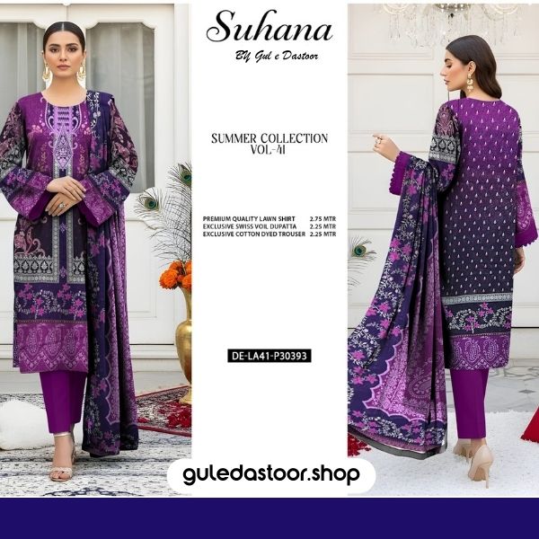 Premium quality lawn shirt with an elegant Swiss Voile dupatta and comfortable cotton dyed trouser. Perfect choice for a stylish and graceful look.